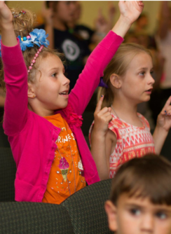 Every Wednesday at 6 PM, all children through 5th grade meet in the Worship Center. It's an awesome time for kids to have fun, play games, build crafts, study their Bible, and learn about God!